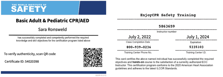 Important: Our virtual certifications are not AHA accredited. We use EnjoyCPR to provide these certifications. You can review the curriculums here.